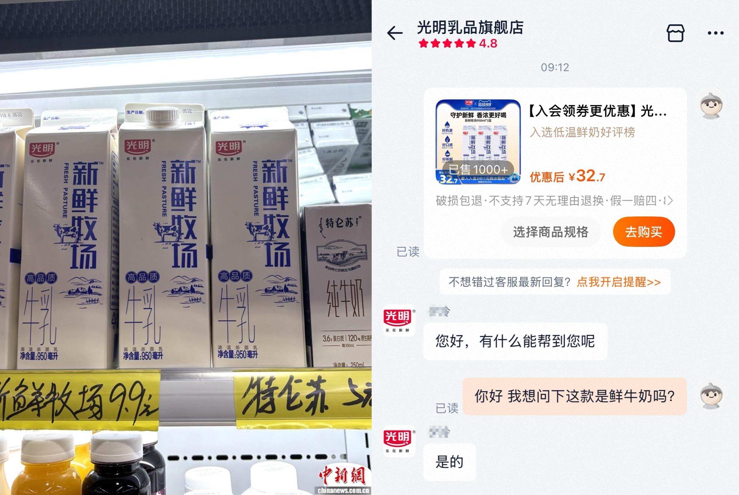 光明「新鮮牧場」被指擦邊鮮牛奶