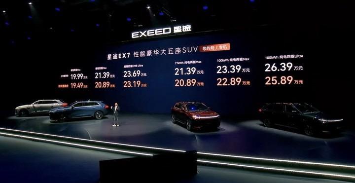 昨天,奇瑞星途 EX7 正式上市,推出純電與增程兩種動力共 6 款車型,官方指導價爲 19.99 萬至 26.39 萬元。