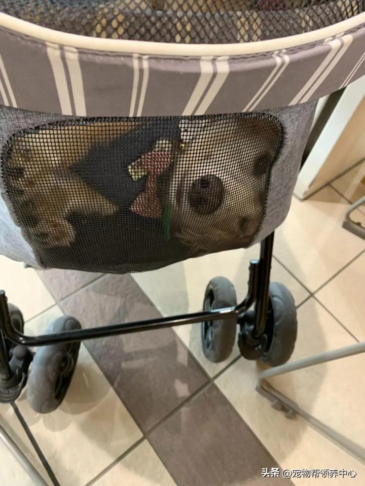 鏟屎官往推車內一看,發現狗狗臉和雙腳緊貼在網格上,眼神不斷髮射出怨念,彷彿是在催促鏟屎官快一點。