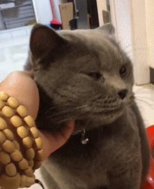 鏟屎官在給藍貓按摩的時候,還可以給點零食它,讓它高興哦。