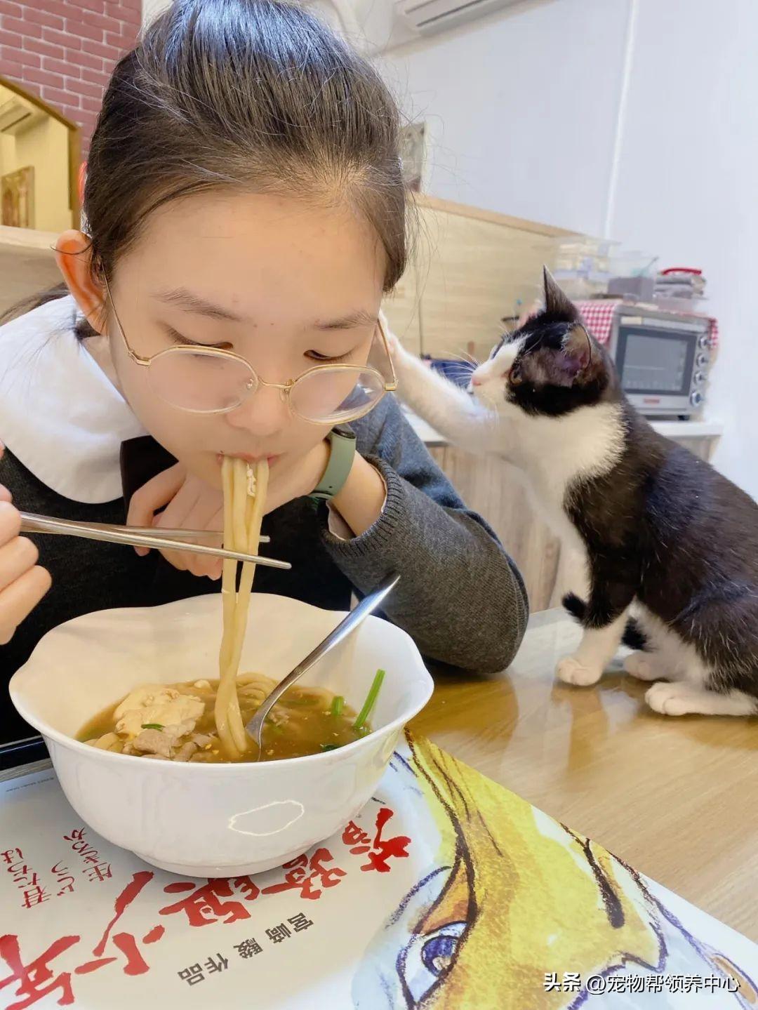 近日,一位網友分享女兒在喫麪時,一旁的小奶牛貓瘋狂搗亂,玩玩頭髮,拍拍耳朵,動動筷子,還想搶食,讓網友直呼“全家快被它煩死了!”