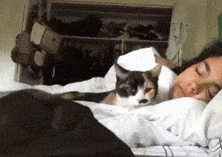 不過有的貓咪和主人睡覺,單純是天氣冷了, 找你取暖哦!
