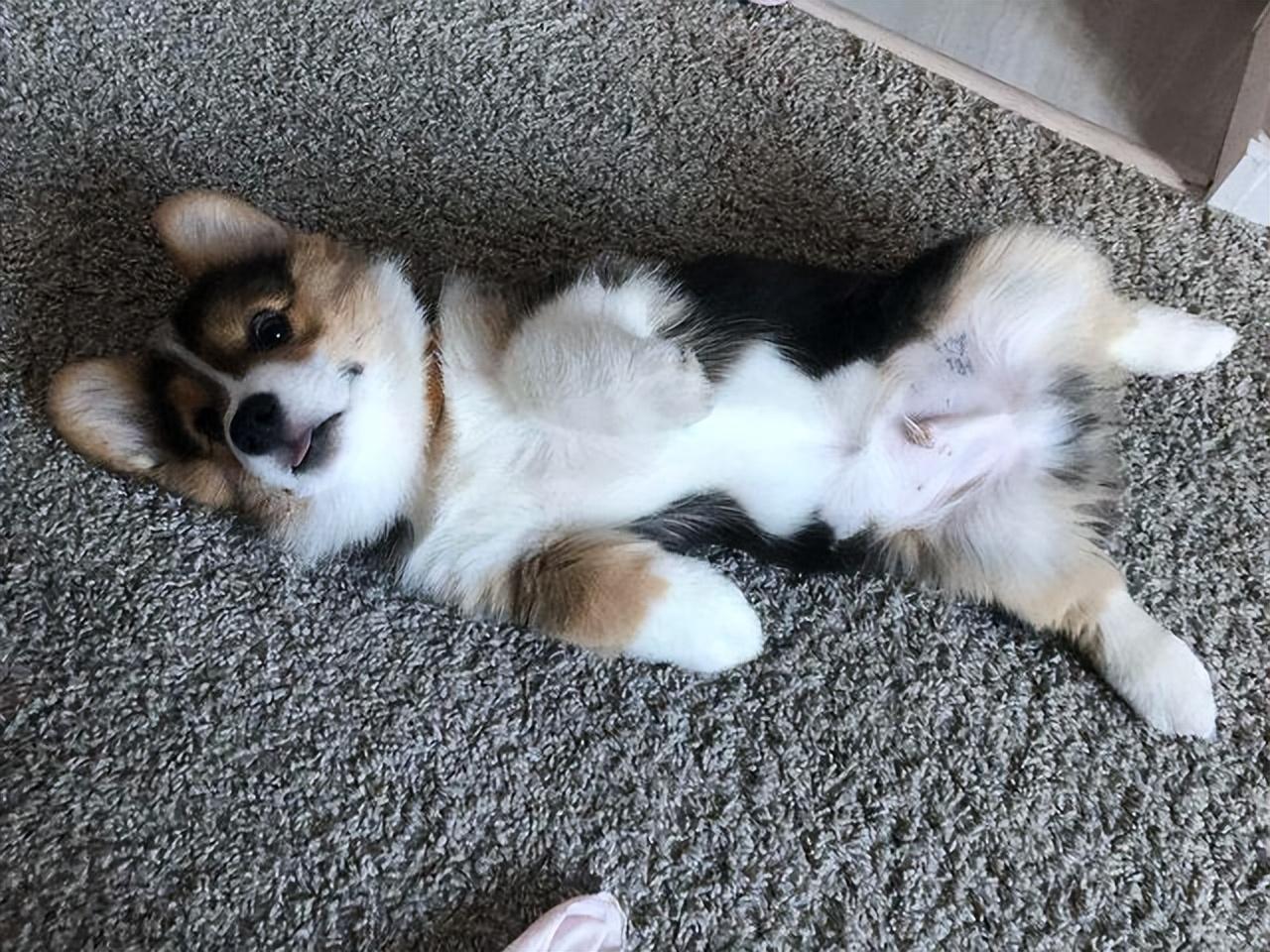 狗狗翻滾、露出肚皮是表示臣服和信任的動作。當狗狗在你面前露出肚皮,那說明它已經把你當做它的主人了,對你毫無保留地信任。
