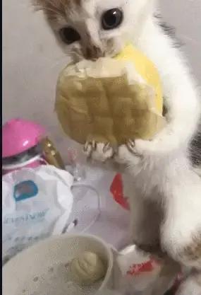 當到了飯點的時候,如果主人還沒有給貓咪食物的話,貓咪會來到主人身邊,抱着主人的手兔子蹬,還會咬一下主人的手,其實它就是在示意主人,告訴主人它餓了,快給它餵飯喫,鏟屎官記得定時定量投餵貓咪哦。