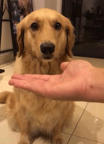 當金毛這樣做的時候,你可以摸摸它的頭或者獎勵些零食給它,這是對金毛的一種回饋,金毛會很開心的。