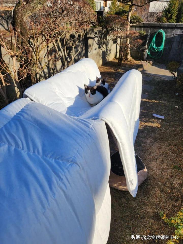 網友生怕一個不注意棉被就會被風颳到地上,便每隔半小時都去看一下棉被還在不在。結果竟發現棉被上長出了兩隻奶牛貓!!!
