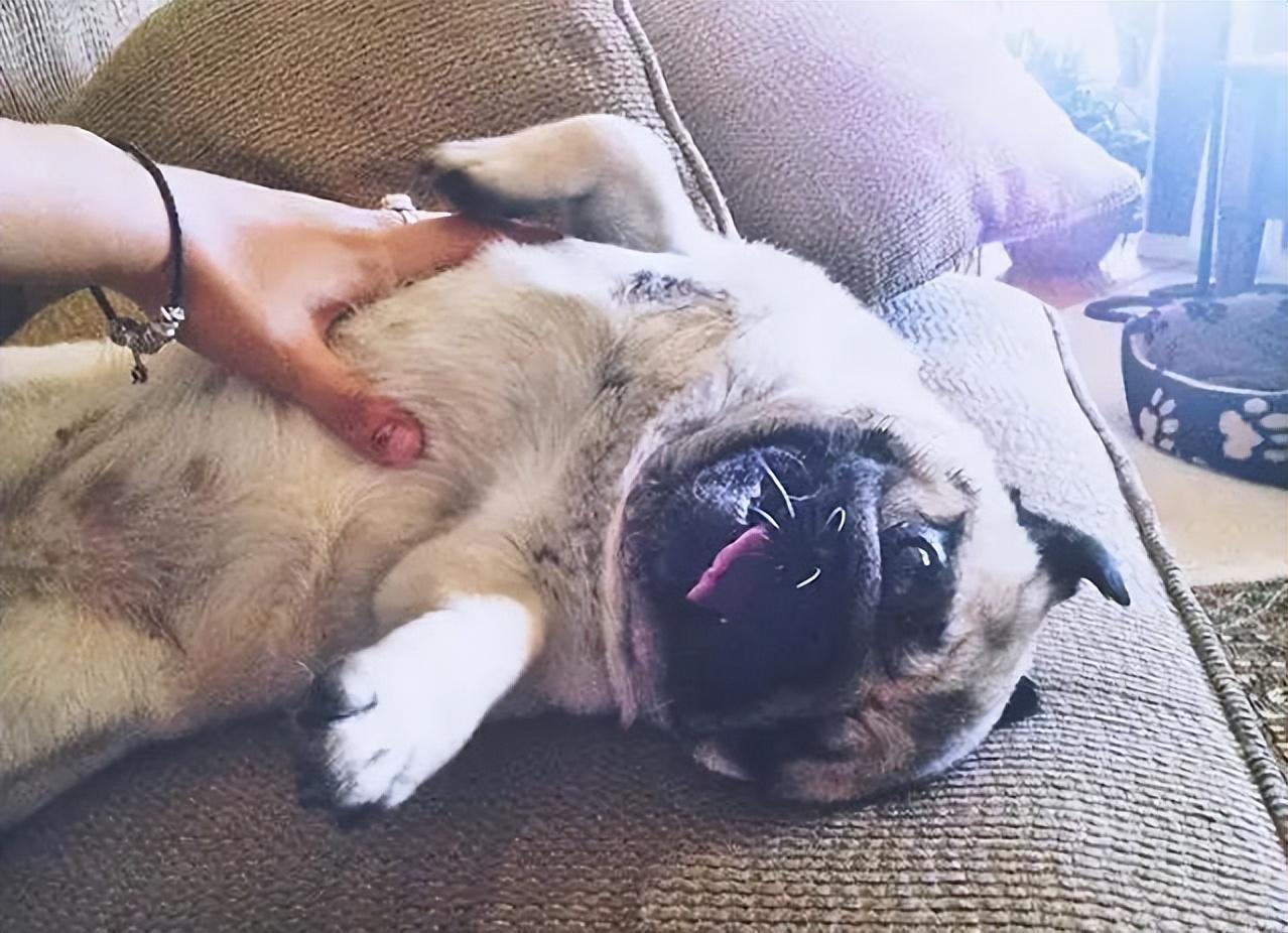 狗狗的肚皮是非常敏感的部位,一般不會隨意露出來。如果狗狗願意在主人面前躺下來,露出它的肚皮讓主人摸,這說明它非常信任主人,也表示它很愛主人。