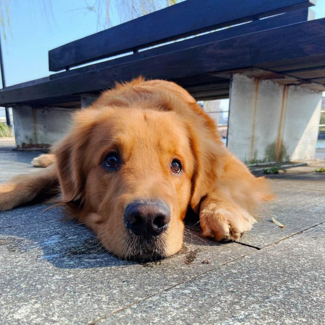 金毛犬的運動量比較大,鏟屎官要每天帶它出門遛彎,有空還可以搭配零食獎勵訓練它!