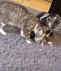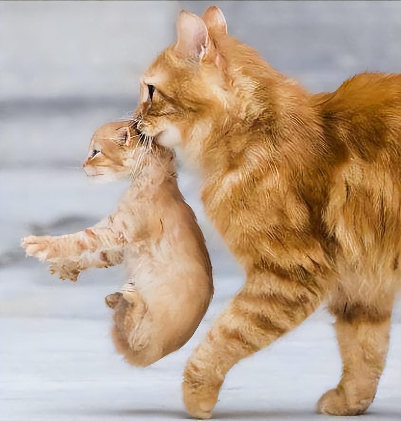 還有的母貓在生了孩子後,它非常開心,第一次做媽媽,興奮的貓咪會把生了孩子這份喜悅帶給主人,會把孩子叼到母親面前,讓主人也高興一下~