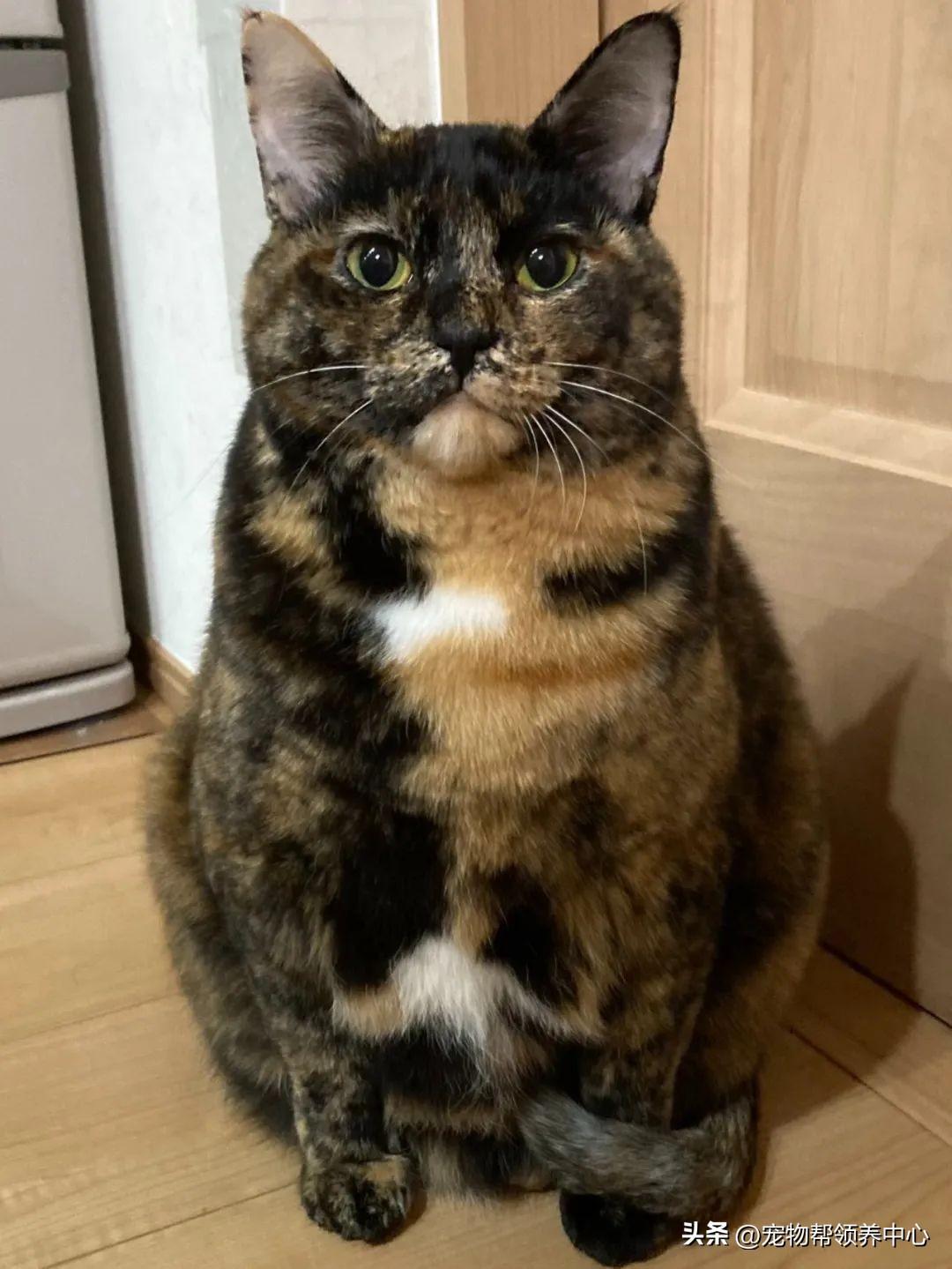 瘦小可憐的玳瑁貓被收養四年後發生了驚人變化,現在都胖到壓手了
