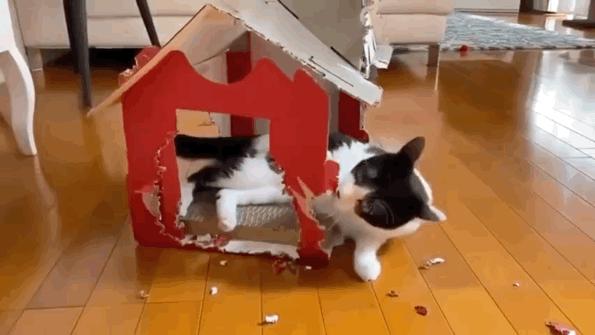 奶牛貓的精力十分旺盛,一天的運動量非常大,所以在家裏經常拆家,會給主人制造很多麻煩和損失。給奶牛貓一個家,它可以還你一片廢墟,真的不是說說而已的。