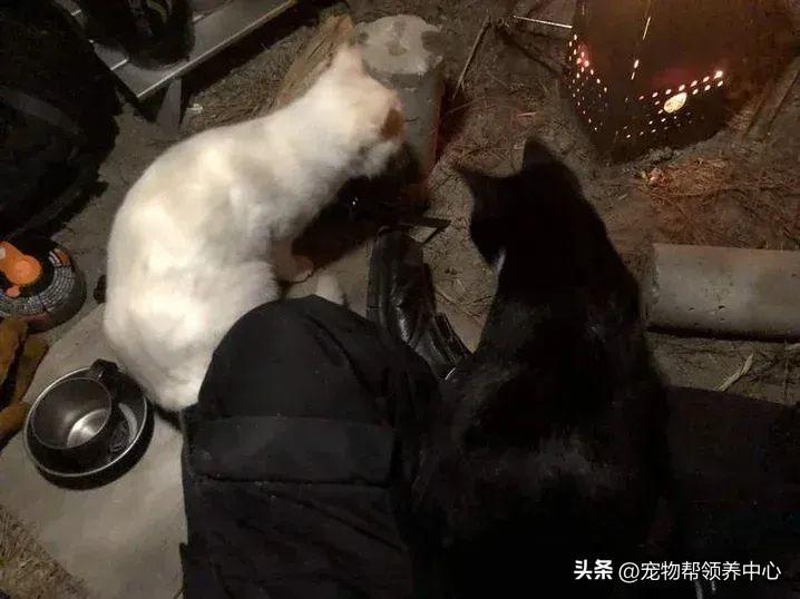 貓咪們不但聚集在帳篷邊烤火取暖,還整夜陪伴網友睡覺。