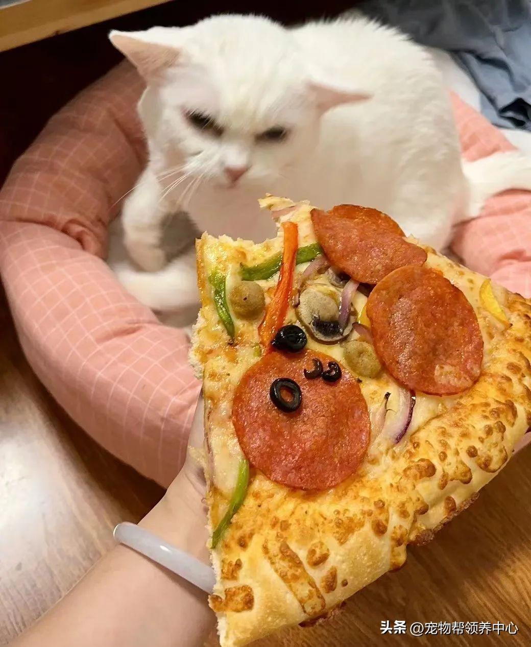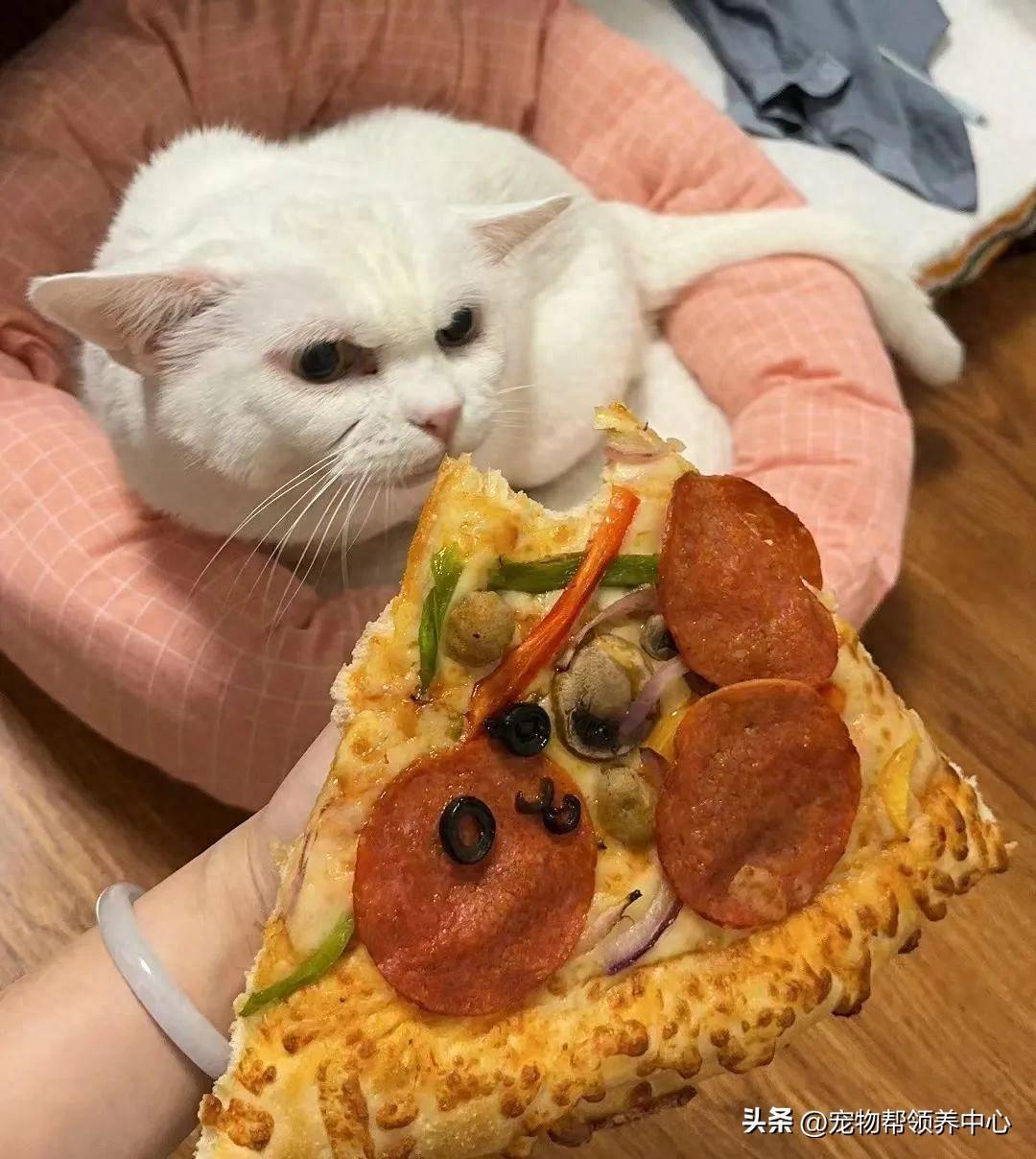 網友@兇猛小虎哥 給自己準備了披薩夜宵,因爲一個人喫太過無聊,他便拿到貓咪面前炫耀。