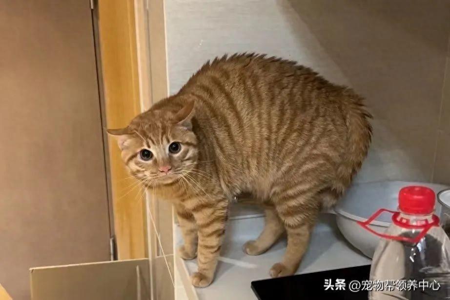 家裏的橘貓炸毛成了小刺蝟,還一直準備攻擊她。