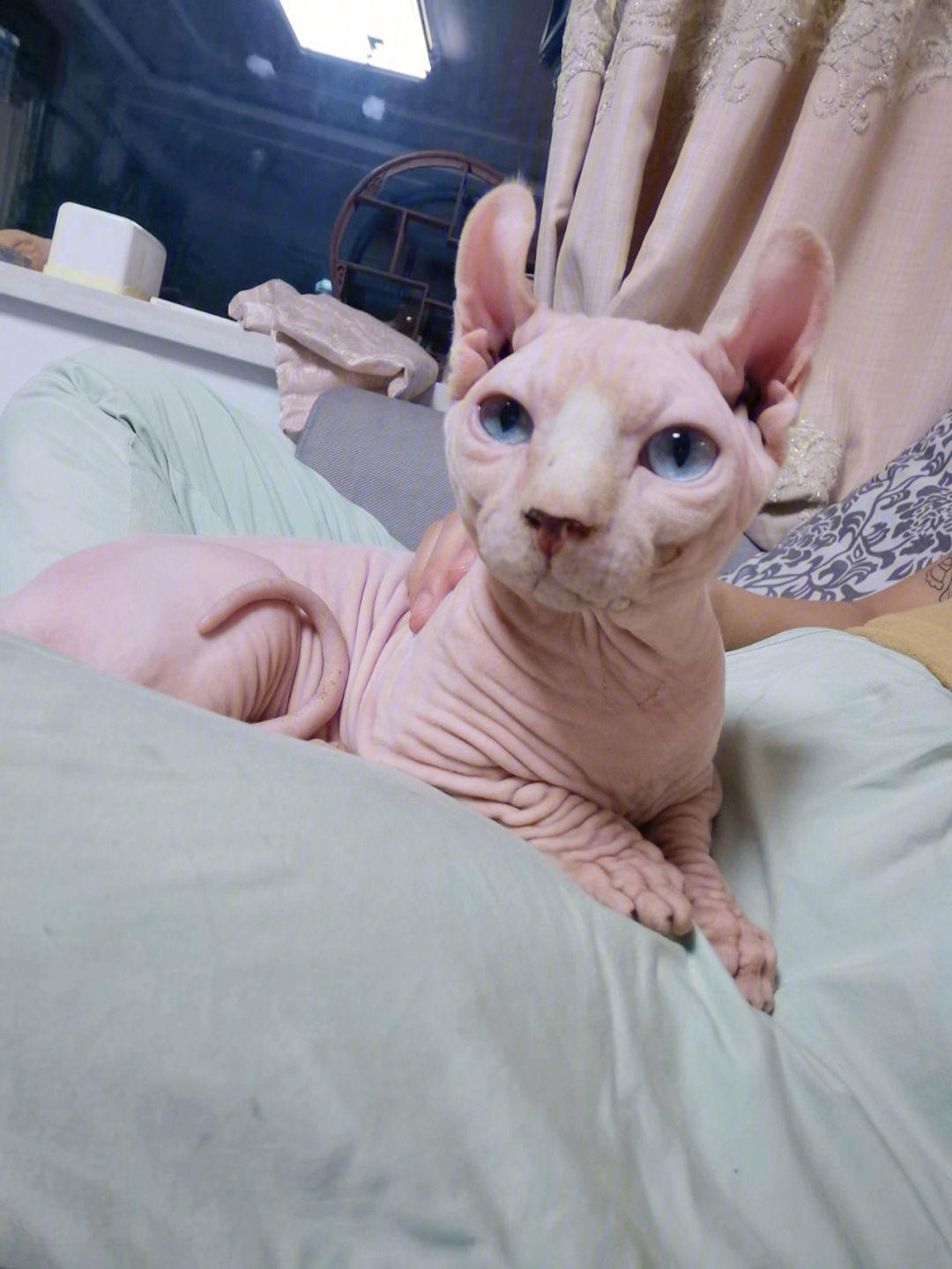 無毛貓天生就沒有毛髮,對毛髮敏感的雖然友好,但飼養起來比較麻煩,正因爲沒有毛髮,所以它們比較容易有油脂,需要定期洗澡,還要給它擦拭油脂,到了夏天出門,還要給它塗防曬霜~