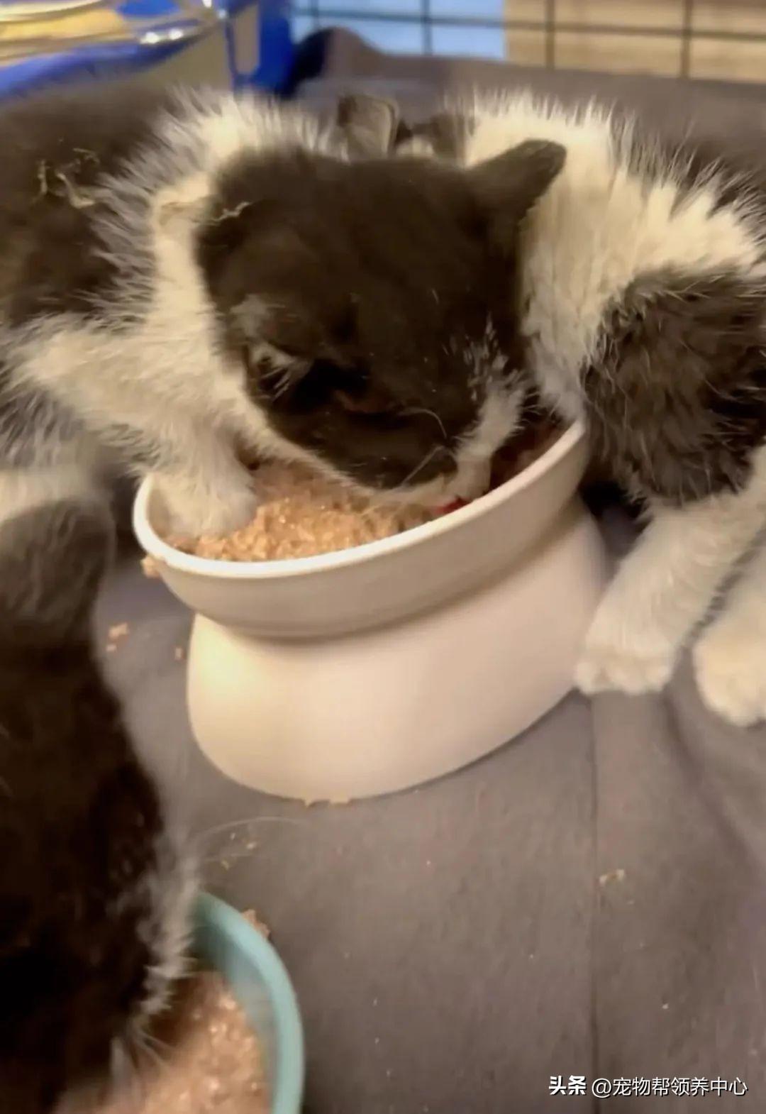 小奶貓們不知道餓了多久,看到食物後立刻狼吞虎嚥地進食。