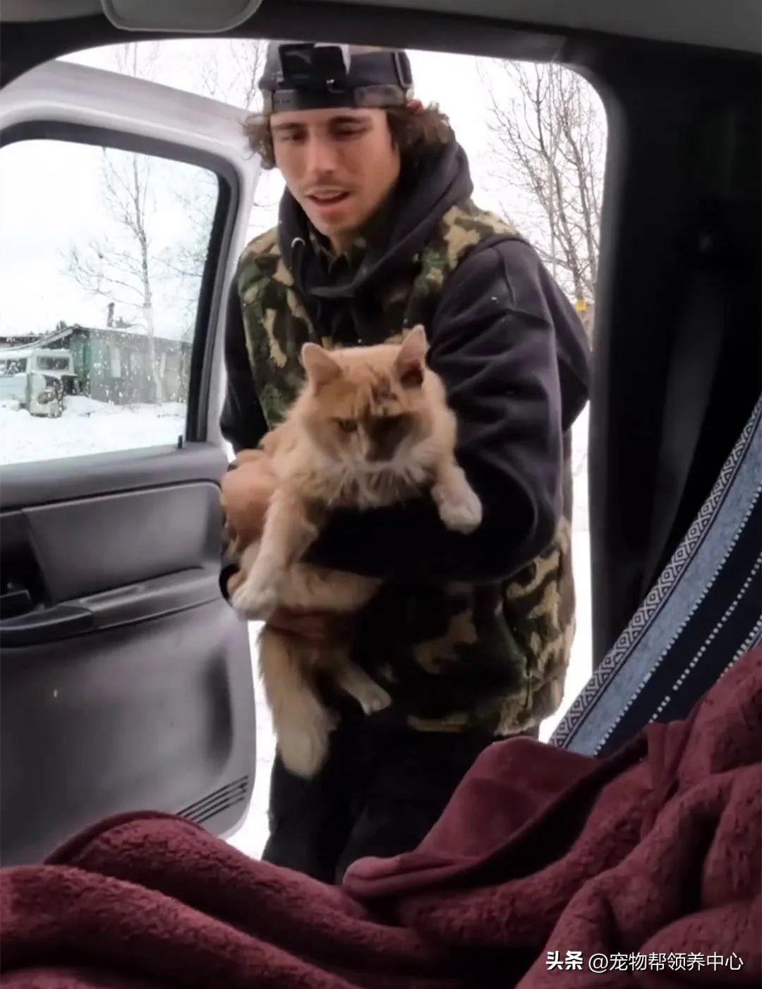 賈斯汀認爲這隻貓咪可能是流浪貓,當下就決定要將它收養,便先把它帶回了車上。