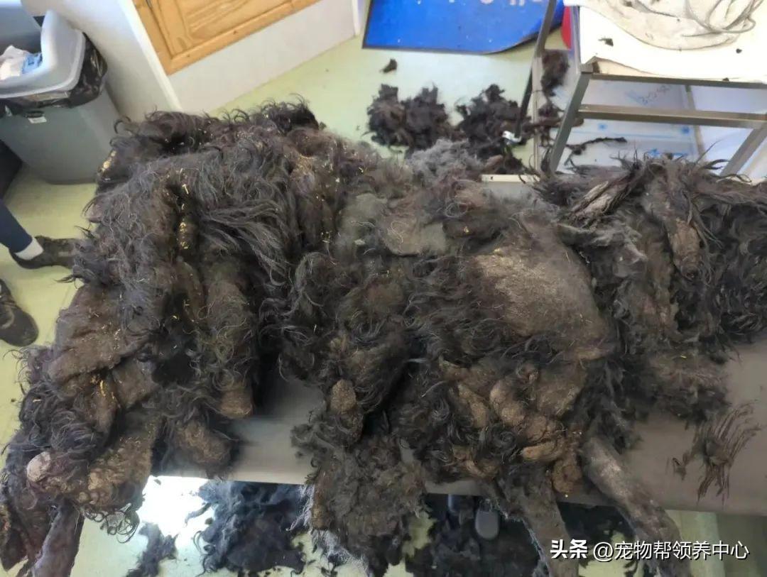 救援團隊花費了很長時間剃掉了巴尼身上多餘的毛髮,最後大家都驚呆了,因爲一共脫下了重達約7.7公斤的毛髮!