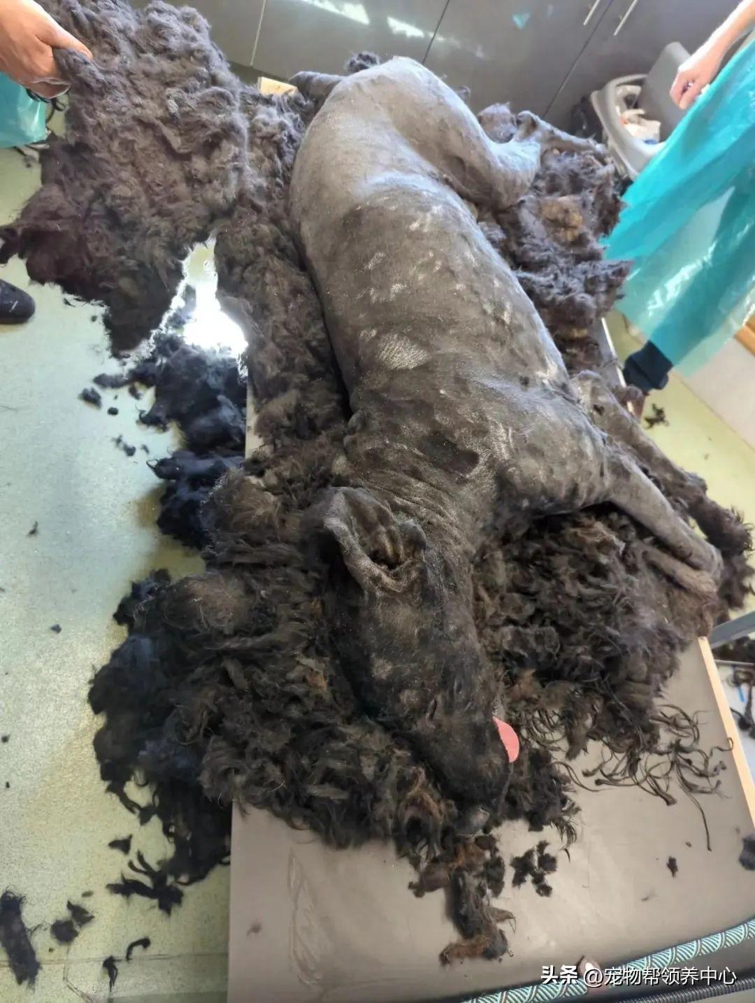 流浪狗全身毛髮打結嚴重、沾滿泥污,剃完毛後...大家都驚呆了!
