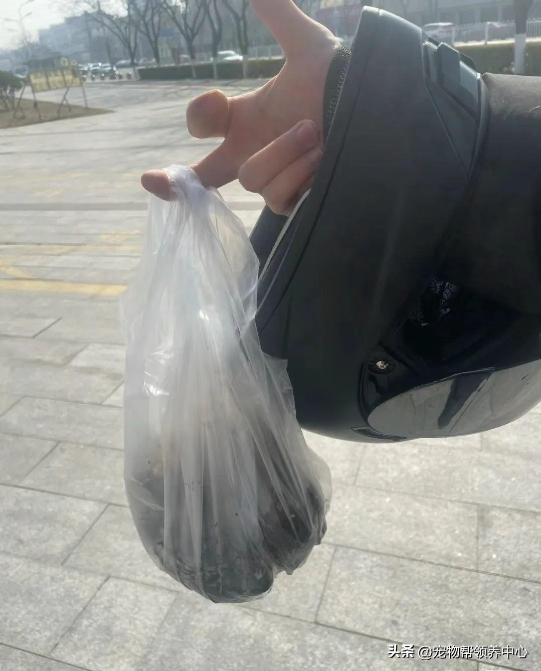 網友從小商店要了個塑料袋,先把奶狗們裝進去,帶到公司簡單清理洗了洗。