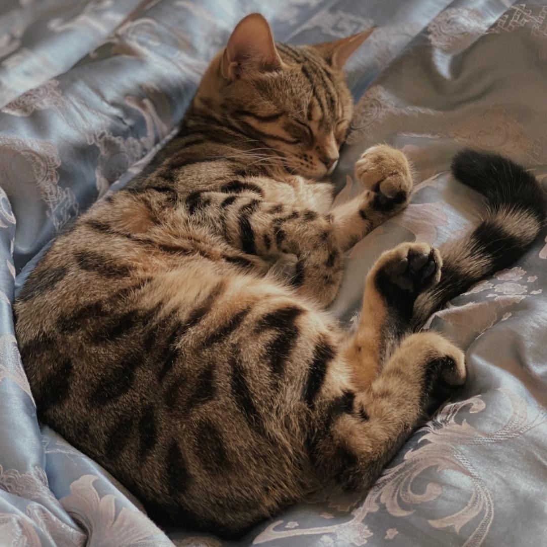 ②睡姿很狂野;這說明貓咪在家裏毫無警惕性,不害怕受到傷害,這是主人給足了貓咪安全感,纔會讓貓咪如此“放肆”。