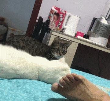 很多鏟屎官都習慣性用手來逗貓,這樣很容易讓貓咪興奮過度,把你的手當成獵物,然後就抱着你的手又蹬又咬了!
