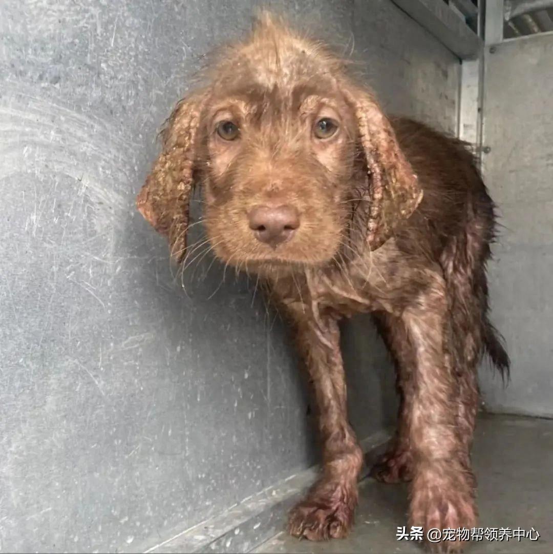 這隻狗狗剛被送到收容所時情況非常糟糕,它患有嚴重的疥瘡甚至還有病毒感染。