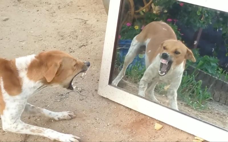 相比之下,機智過人的狗狗被鏡子嚇到一兩次後,就會恍然大悟,知道那就是自己啦,下次再看到鏡子時就會顯得非常從容了。