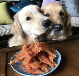 餵雞胸肉的話可切小塊,清水煮熟後餵食,如果偷懶不想煮,可以買0添加的雞肉乾給狗狗,也是一樣的效果。