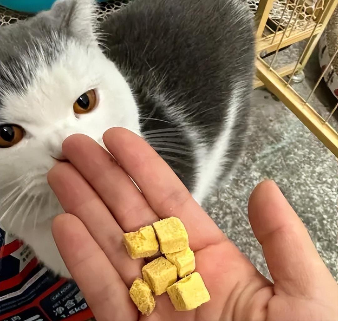 如果覺得煮雞蛋麻煩,給貓咪餵食蛋黃凍幹也是一樣的效果,但一定要注意選擇一款0添加的蛋黃凍幹。