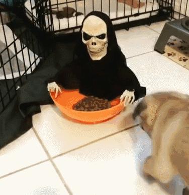 假裝搶走它的狗糧