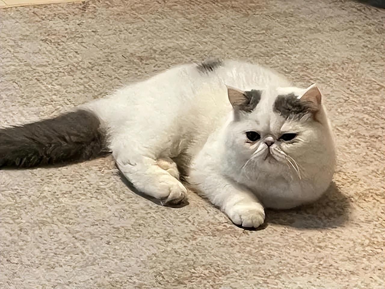 有的加菲貓睫毛或眼周的毛髮生長過長,就很容易刺到眼睛,貓咪難受就會不斷地流淚,積在眼周,導致淚痕的現象。