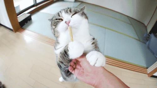 在陪伴貓咪玩耍的時候,還可以搭配着一些小零食一起,這樣能讓貓咪感到更加開心,也會更加依賴主人噢。