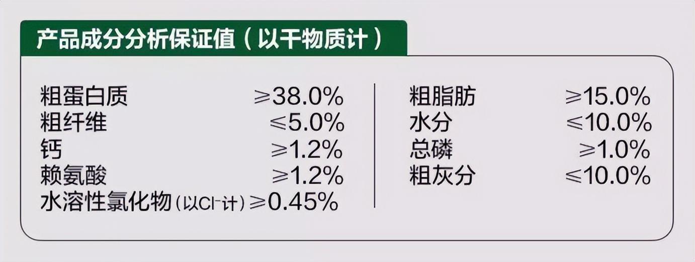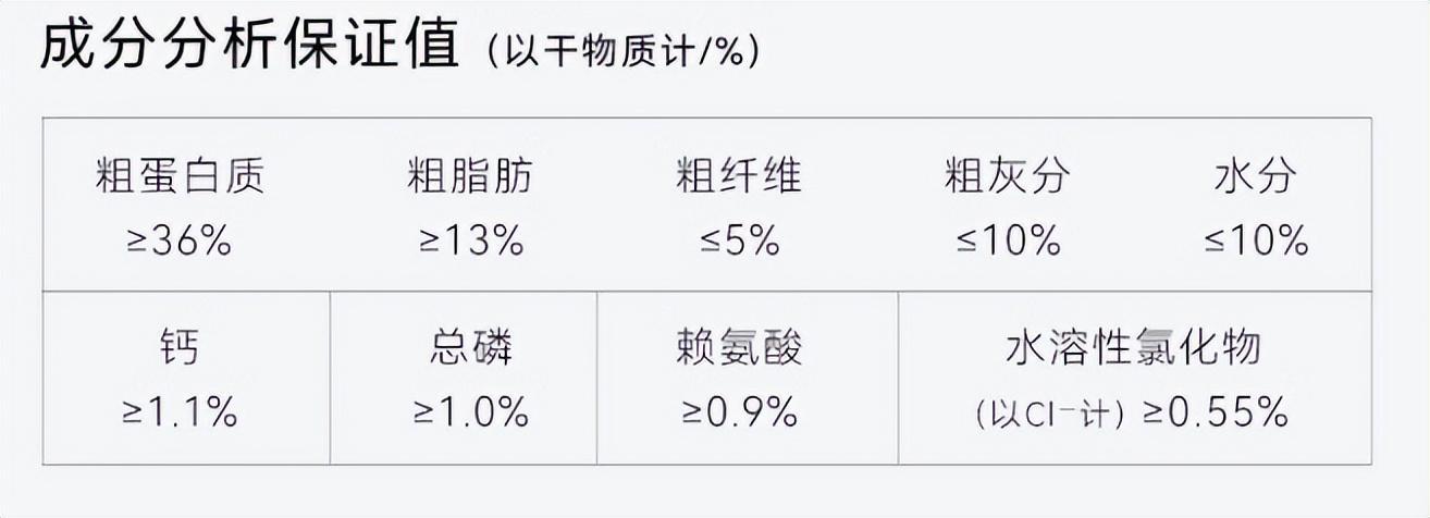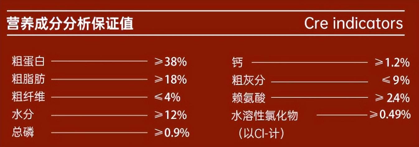 鴨肉粉10%、三文魚粉10%、冷凍三文魚10%、冷凍羊肉10%、冷凍鴨肉8%羊肉粉8%、馬鈴薯粉、木薯粉、豌豆、雞油、啤酒酵母粉、冷凍雞肉2%魚油2%、胡蘿蔔粉、蘋果乾、凍幹三文魚0.5%、纖維素、絲蘭粉、枸杞子金銀花、綠脣貽貝粉0.2%、蘆薈幹、褐藻粉0.2%