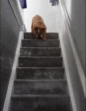 4、有的小狗,平時根本不願意運動,連下樓梯都恨不得自己能夠直接滾下去,能不用腿就不用腿,等着主人看不過眼了肯定會抱它下樓的。
