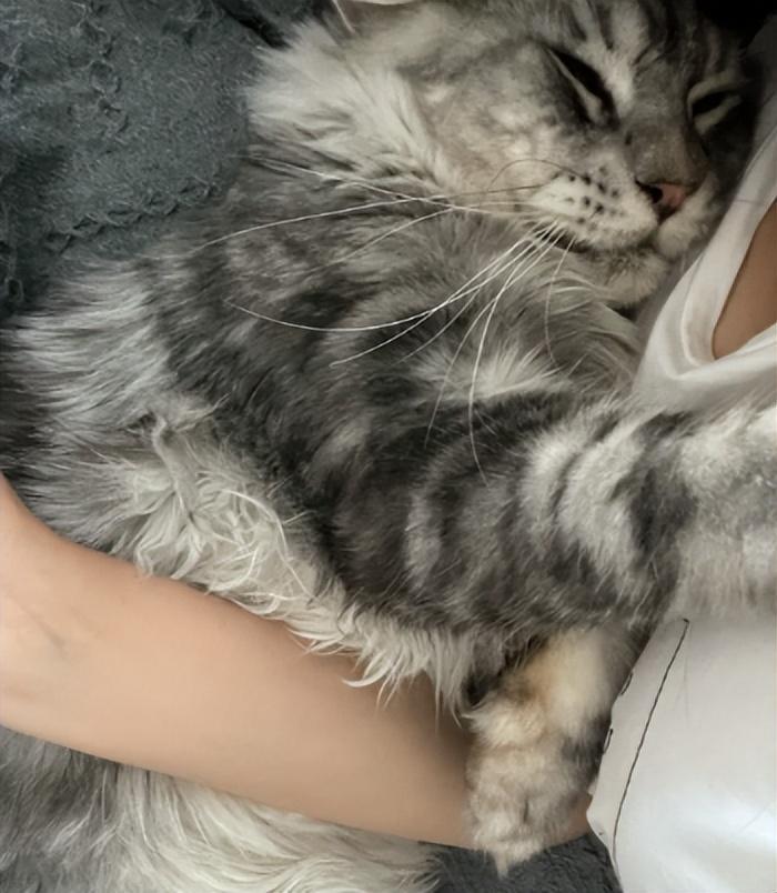 緬因貓的體型和別的貓咪相比會更大一些,但這個體型抱起來睡覺那是剛好合適,超級治癒,比任何玩偶都要舒服。