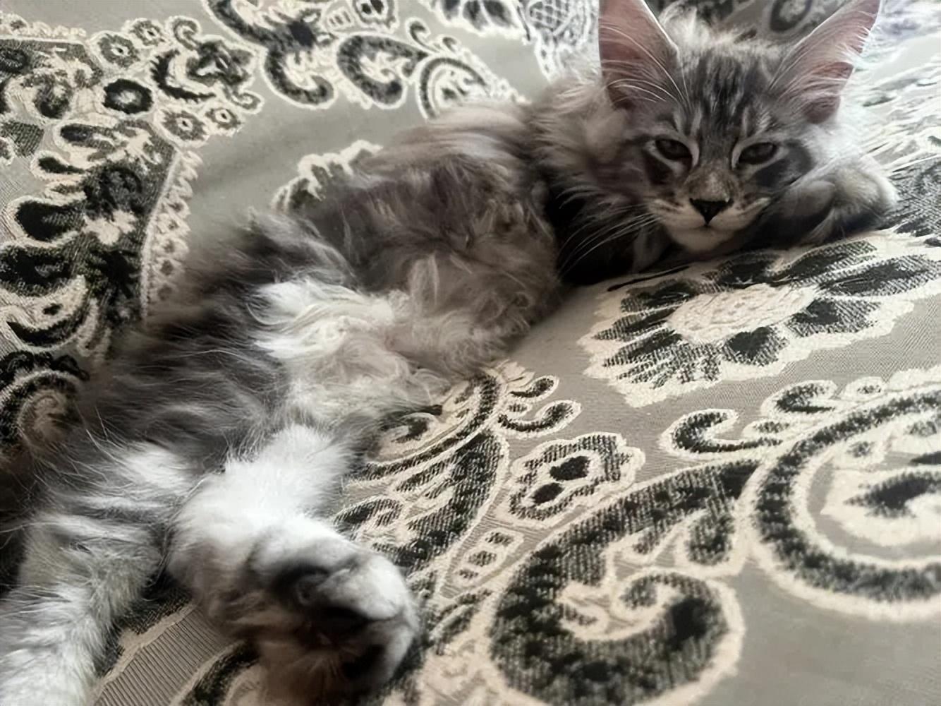 如果不想一覺睡醒一牀的毛髮,最好能在睡前給緬因梳梳毛。緬因作爲一隻長毛貓,它的掉毛量是比較驚人的。