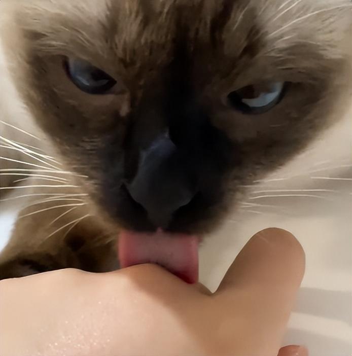 如果你家的小暹羅會這樣一靠近你,就要舔你蹭蹭你,那就說明它已經把你當成親媽了,非常的依賴你。