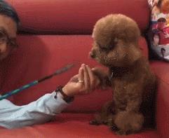 有些寵主非常盡職盡責,經常幫狗狗檢查身體,從爪子到腦袋,全身上下任何部位都不放過。因此狗狗被你摸爪子,就懂了“主人要幫我檢查身體。”這是個好習慣,值得表揚噢!