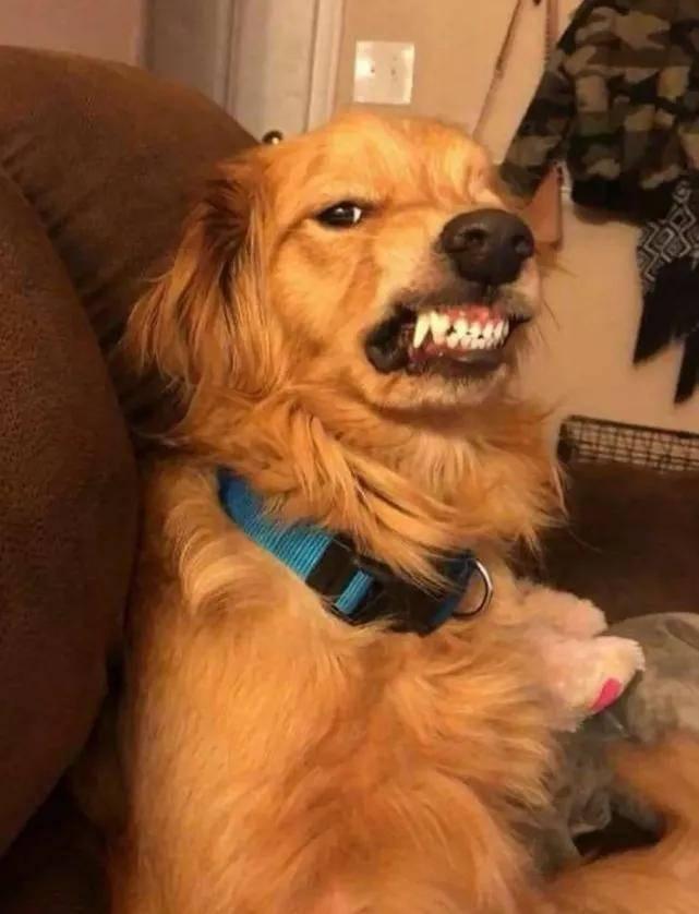 如果狗狗露出牙齒,嘴巴咧開,這也是生氣的明顯信號。此時的它可能已經處於一種極度緊張和憤怒的狀態,隨時可能發動攻擊。它的眼睛可能會緊緊盯着讓它生氣的對象,目光中充滿了敵意。