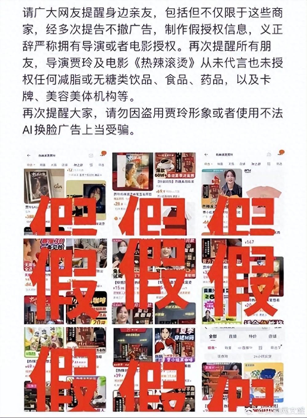賈玲作爲一位多才多藝的藝術家,不僅在演藝界取得了顯著成就,還憑藉自編自導自演的電影《熱辣滾燙》贏得了廣泛好評。然而,一些不法商家卻利用她的知名度進行非法宣傳,這種行爲不僅損害了賈玲的合法權益,也擾亂了市場秩序。