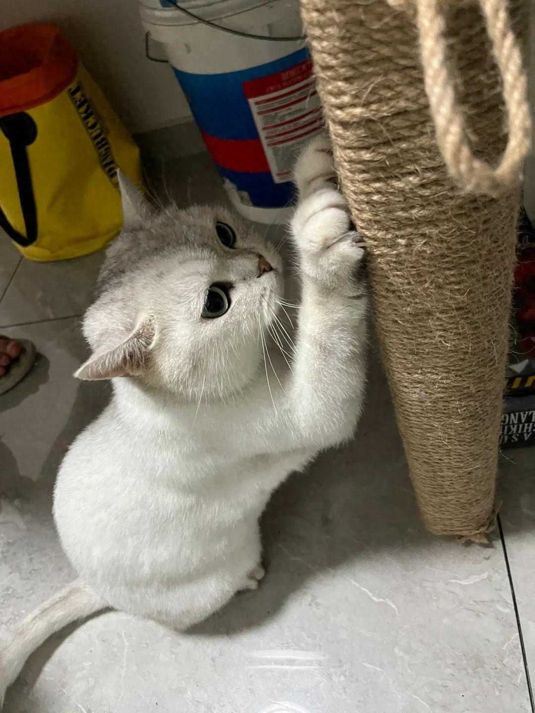貓咪磨爪是它們的天性,我們不能制止。我們應該給貓咪準備足夠的磨爪工具,比如是貓抓板、貓爬架、紙皮等,還可以在木椅木桌腳纏上麻繩,能減少一些損害。
