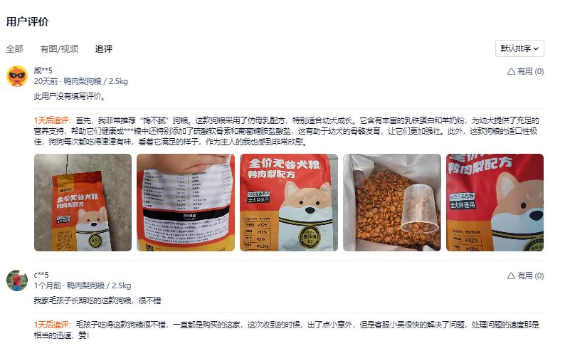狗糧的用戶評價也是判斷其好壞的重要依據。如果一款狗糧普遍差評,那麼要警惕其質量可能真的不好。不過,沒有十全十美的狗糧,偶爾的差評屬於正常現象。