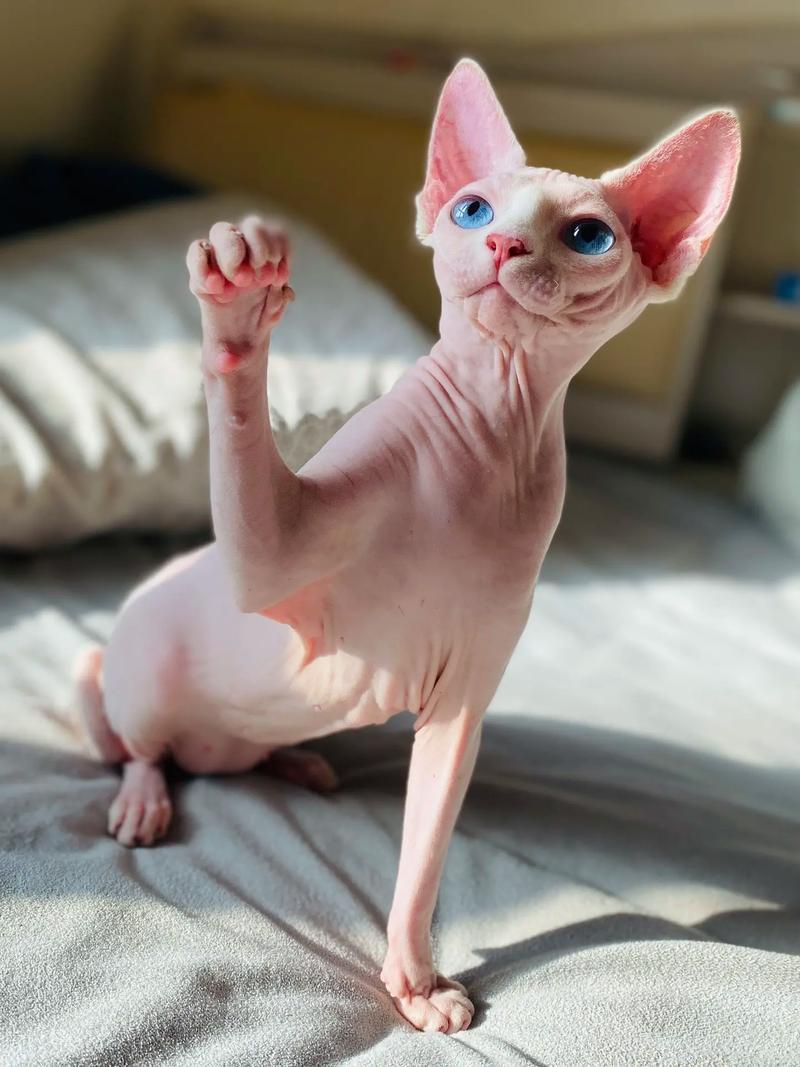 - 優點:獨特的外表,不掉毛,適合對貓毛過敏的朋友,智商高,性格溫順。