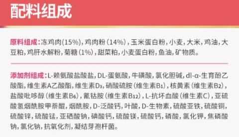 主要成分:凍雞肉、雞肉粉、玉米蛋白粉