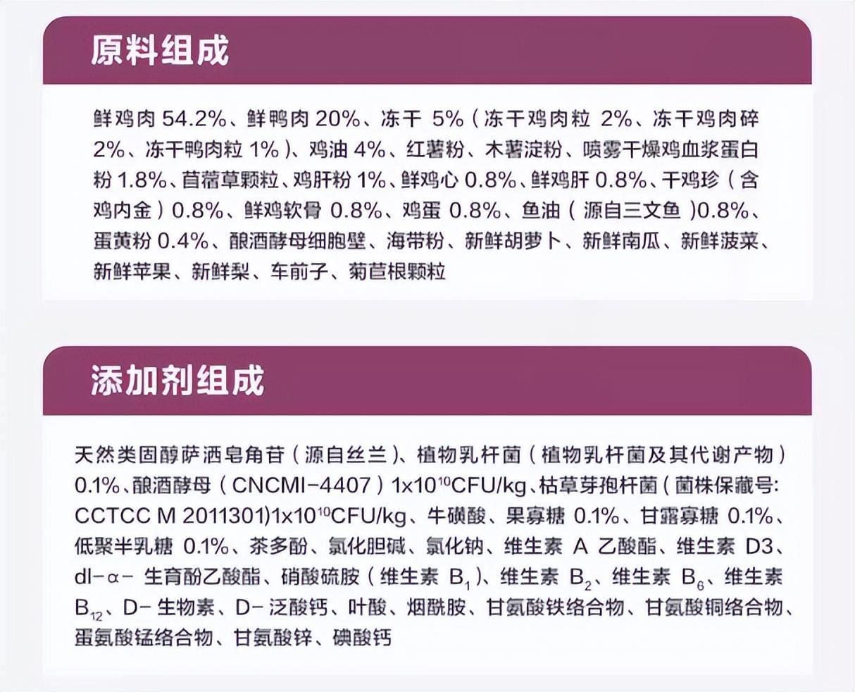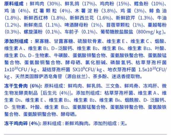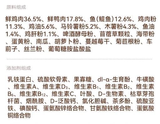 主要成分:鮮雞肉、鮮鴨肉、凍幹