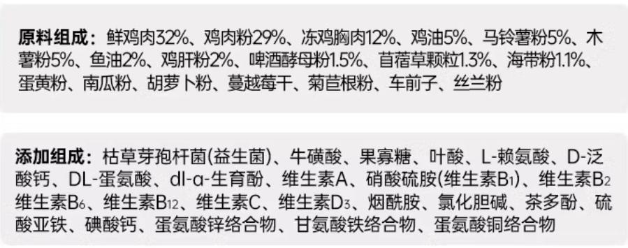 主要成分:鮮雞肉、雞肉粉、鯷魚