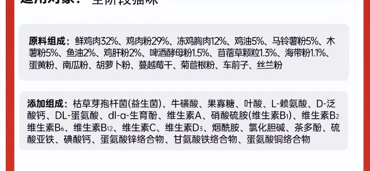 其他有益添加:添加了魚油、海帶粉等成分,富含不飽和脂肪酸,有助於貓咪的毛髮健康,能讓毛髮更加柔順亮澤。還添加了果寡糖和益生菌等成分,可以促進腸道蠕動,維護貓咪腸道菌羣平衡,減少軟便情況的發生。