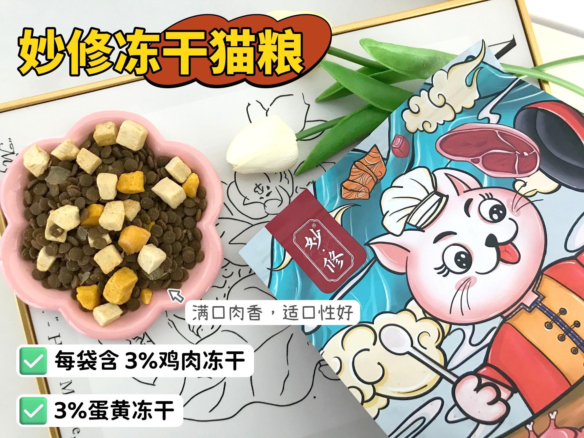 這幾年國產貓糧的發展速度很快,越來越多的國產優質好貓糧進入到大家的視線內,就拿這款“妙修凍幹貓糧”來說: