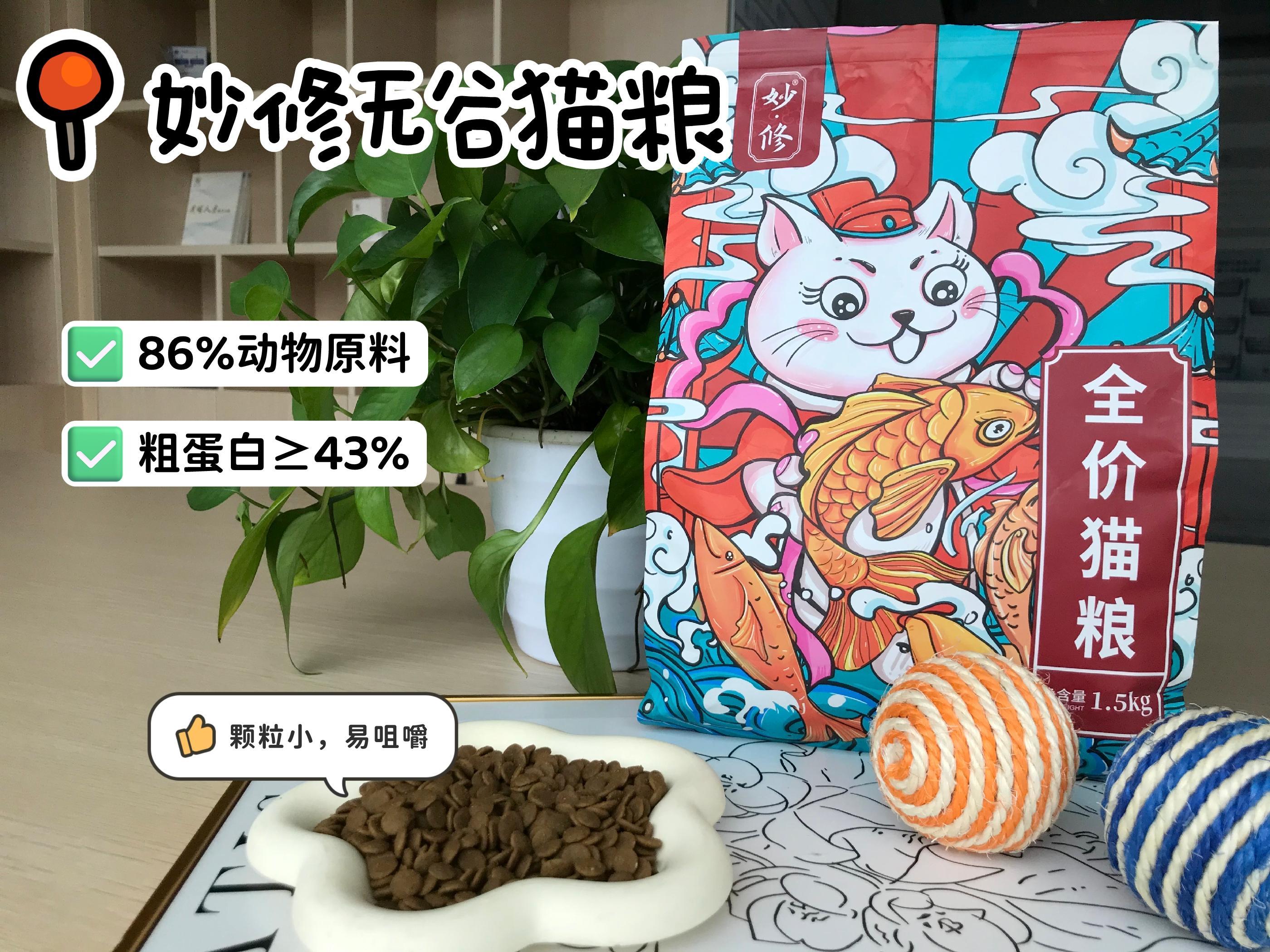 產品優勢:妙修貓糧公開配方原料佔比、公開原料供應商、公開質檢報告,讓消費者喂得更放心。提供試喫裝,如果貓咪不愛喫可以包退,避免了浪費。